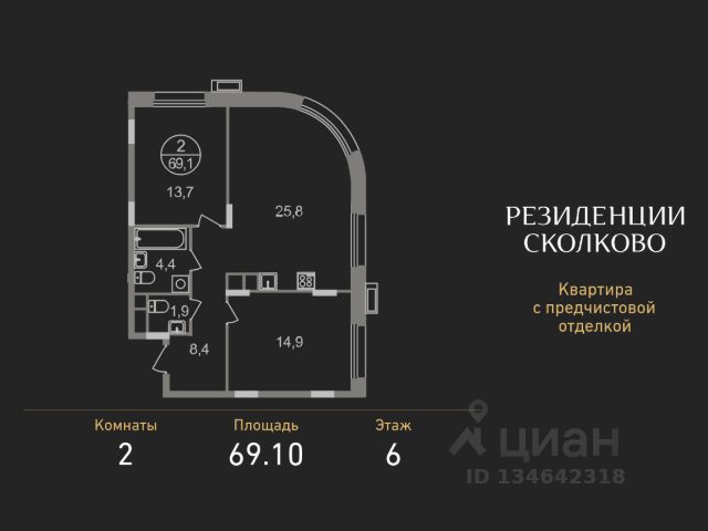 Продается трехкомнатная квартира в девятиэтажном монолитном доме жилого комплекса "Резиденции Сколково". Общая площадь квартиры - 105,8 кв. м, этаж 3 из 9. Срок сдачи - 2 квартал 2027 года. ТОЛЬКО ДО 31 МАРТА выгодные условия на приобретение квартиры в ипотеку или рассрочку. Звоните - и мы подберем оптимальное предложение под ваш запрос! Резиденция 2.2 состоит из 6 секций: - 5 секция с отделкой White Box с возможностью повышения до дизайнерской за дополнительную плату - Остальные секции - без отделки ЖК "Резиденции Сколково" - это современный проект бизнес-класса, расположенный в престижном районе Сколково, у западной границы Москвы. ТРАНСПОРТНАЯ ДОСТУПНОСТЬ: - 0 км от МКАД - 10 минут на личном авто до метро "Озёрная" Солнцевской линии - 15 минут на личном авто до Москва-Сити по Кутузовскому проспекту - 20 минут на личном авто до центра по проспекту Генерала Дорохова - 24 минут на личном авто до центра по Мичуринскому проспекту ОСОБЕННОСТИ РЕЗИДЕНЦИИ 2.2: - панорамное остекление - французские балконы - сквозные входные группы с безбарьерным входом - стильная мягкая зона ожидания - колясочные во входных группах на 1 этажах - входная группа 1 этажа каждой секции оснащена санузлом - паркинг на -1 этажах - по 2 лифта: 1 пассажирский, 1 грузопассажирский ПРИВАТНОСТЬ: Огороженная, закрытая территория, круглосуточное видеонаблюдение, контроль доступа во внутренний двор. БЛАГОУСТРОЙСТВО И ИНФРАСТРУКТУРА: Масштабное озеленение в концепции "двора-парка" и множество площадок отдыха для взрослых и детей. В 5 минутах ходьбы расположен Мещерский лесопарк. В жилом комплексе уже построены и работают 2 муниципальных детских сада с бассейном, школа на этапе строительства. В непосредственной близости - частные и муниципальные детские сады и школы, кафе и рестораны, продуктовые магазины, салоны красоты и другие готовые объекты городской инфраструктуры. *В 3D туре представлена отделка "Фрунзуская классика. Business Plus"