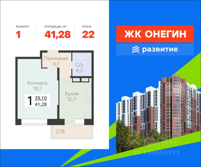 Продается квартира площадью 43.28 кв. м с отделкой white box на 21 этаже 22 этажного дома. Квартира находится в новом жилом комплексе "Онегин", расположенном по адресу: Московская область, г. Подольск, ул. Садовая 3, корп. 1. "Онегин" - начало новой жизни. Проект от девелопера "Развитие" расположился в центральной части Подольска - города-спутника столицы. Жилой комплекс состоит из 10 секций переменной высоты (20 - 22 этажа) и включает в себя 510 квартир, собственную инфраструктуру, закрытый благоустроенный двор-парк, подземный паркинг на 262 машино-места. Прекрасный баланс города и природы - ЖК "Онегин". Расположение Пешком: - 5 мин. до остановки "Красная горка"; - 10 мин. до склона у реки Пахры; - 30 мин. до МЦД "Силикатная" (или 15 мин. на автобусе). На автомобиле: - 3 мин. до проспекта Ленина с выездом на Симферопольское шоссе; - 10 мин. до центра Подольска; - 30 мин. до ст. метро "Бульвар Дмитрия Донского"; - 35 мин. до МКАД; - 1 час до центра Москвы. Благоустройство - большой приватный двор только для пешеходов; - собственный сквер с всесезонной растительностью; - яркий игровой комплекс для детей всех возрастов; - спортивный корт с тренажерами; - площадка для баскетбола и футбола; - стильная входная группа с витражным остеклением; - 2 пассажирских лифта и 1 грузовой в каждом подъезде; - беседки и скамьи для отдыха; - экологически-чистое игровое и спортивное оборудование; - освещение в темное время суток; - гостевая автостоянка на отдельной территории; - все сервисы бытовых услуг в шаговой доступности. Окружение - досуговые пространства в любое время года: парк культуры и отдыха имени В. Талалихина, музей-заповедник "Подолье", горнолыжный комплекс "Красная Горка", исторические усадьбы "Остафьево" и "Дубровицы"; - школа и детский сад в 5 минутах ходьбы; - торгово-развлекательные центры "Капитолий", "Галерея", "Кварц"; - 3 фитнес-центра, стадионы "Зенит" и "Подолье", 4 взрослых и детских бассейна.