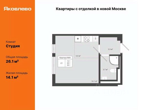 Продается студия площадью 27.7 кв.м. на 4-м этаже ЖК "Яковлево" 8 корпусов 1-ой и 2-ой очереди строительства введены в эксплуатацию. Жилой комплекс "Яковлево" — это проект для тех, кому близка энергия природы в сочетании с инновационными технологиями XXI века. При возведении ЖК применена технология крупногабаритного модульного домостроения. Квартиры здесь — это выбор нового поколения, для которого дом является местом, где можно черпать силы для новых свершений. Элегантный минимализм в архитектуре разработан так, чтобы не нарушить, а дополнить гармонию окружающего ландшафта. Пластика фасада базируется на простой геометрии, а отличительной особенностью комплекса является невысокая этажность (4 этажа) большей части домов. Только два корпуса — 11 и 16 этажей. Инфраструктура ЖК: 15 жилых корпусов Школа и детский сад Молочно-раздаточный пункт Дворы с детскими площадками и зонами отдыха Магазины формата "у дома" на 1-х этажах зданий Автостоянка на территории 30 минут на транспорте до ближайших станций метро "Тёплый Стан", "Коммунарка" В перспективе — открытие станции метро в г. Троицк в непосредственной близости от ЖК "Яковлево". Условия приобретения: Льготная ипотека и возможность использования материнского капитала. Рассрочка на покупку квартиры: Первоначальный взнос — от 30% от стоимости квартиры. Срок рассрочки — 1 год. Платежи вносятся равными частями (ежемесячно или ежеквартально). Рассрочка платная: стоимость квартиры увеличивается на 20% от размера рассрочки. Подробные условия уточняйте в нашем офисе продаж!