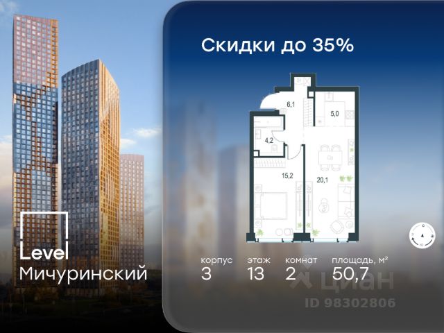 Цена указана с учётом скидки при 100%-й оплате, несубсидированной ипотеке, рассрочке (кроме программы "Рассрочка 0%"). В жилом квартале, расположенном на границе с природным заказником "Долина реки Очаковки", продаётся 2-комнатная квартира площадью 51.70 кв.м с отделкой white box. Квартира расположена на 34 этаже 37-этажного корпуса 5 в жилом комплексе бизнес-класса Level Мичуринский (компания Level Group/Левел групп). Отличная транспортная доступность: - от 10 мин. пешком до станции метро "Мичуринский проспект" - 15 мин. пешком до станции метро "Аминьевская" - 7 мин. на авто до МКАД - 10 мин. на авто до ТТК - 15 мин. на авто до Москва-Сити Продуманный архитектурный проект: - Выразительная архитектура от известных бюро: корпуса 1-6 - СПИЧ, корпуса 7-13 - Borisov Architects; - Из окон открываются живописные виды на парки, Москва-Сити и МГУ; - Высокие потолки до 6,35 м; - Стильные лобби с окнами в пол и высокими потолками до 4,7 м; - С каждого этажа дома на лифте можно спуститься в подземный отапливаемый паркинг. Расположение: Level Мичуринский строится в одном из самых зелёных районов Москвы - Очаково-Матвеевское. Этот уголок столицы идеален для поддержания здорового образа жизни. В шаговой доступности от проекта находятся заказник "Долина реки Очаковки" - 1 мин. пешком и Очаковский парк - 7 мин. пешком. На велосипеде можно добраться до таких парков, как "Событие", парк Олимпийской деревни, парк 50-летия Октября и парк Школьников. В 15 минутах езды на авто расположено более 30 детских садов (из них 14 в пешей доступности), 32 школы (из них 13 в пешей доступности) и 14 вузов. Также в ближайшем окружении - более 25 медицинских учреждений, 11 спортивных клубов и 22 продуктовых супермаркета. Внутренняя инфраструктура: На территории жилого комплекса строится три детских сада и школа. На первых этажах домов откроется супермаркет, фитнес-центр, ресторан, кафе и другие сервисы. Подземные этажи займут паркинги: трёхуровневые - в этапах 1 и 2, одноуровневый - в этапах 3 и 4. Преимущества проекта: - 4,5 га благоустроенной территории с видовым мостом, уличным кинотеатром, зонами для тихого отдыха, работы, воркаута, площадки для петанка, футбола, настольного тенниса и пляжного волейбола. - Дизайнерские лобби с панорамным видом на двор, мойками для лап животных и комфортными зонами ожидания. - Безопасность жителей: круглосуточное видеонаблюдение всех зон общего пользования (лобби, лифты, паркинги, детские площадки), система контроля доступа, управление видеодомофоном через мобильное приложение, единый ключ доступа на территорию жилого комплекса. - Технологии и комфорт: высокоскоростной Wi-Fi в лобби и на придомовой территории, автоматическая система контроля и учёта ресурсов, абонентская связь с консьержем, распознавание номеров автомобилей при въезде в паркинг и выезде из него. Продам квартиру с евроремонтом на улице Озерная в Москве.