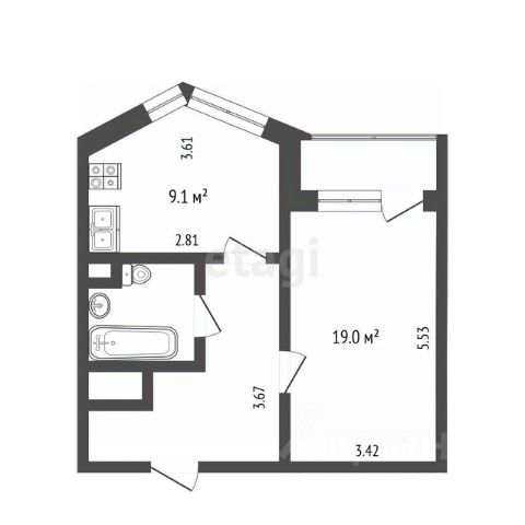 Раздельный санузел. Большой балкон. Окна пластиковые стеклопакеты.