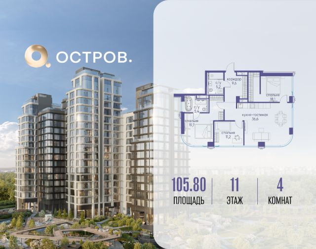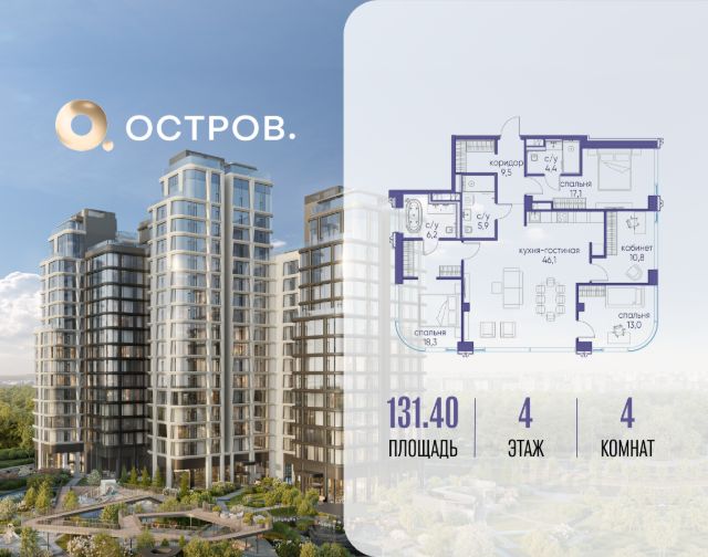 Продаётся квартира от застройщика: общая площадь 144.10 м², жилая 97.60 м², кухня 14.20 м², 8-й этаж, жилой квартал "Остров 12", корпус 2 (секция 1). Срок сдачи: 1 квартал 2029 года. 3 совмещенных санузла. В жилой зоне 2 больших окна на одну сторону, хорошая инсоляция. Позвоните сейчас и забронируйте квартиру! ОСТРОВ от Донстрой - жилой комплекс на западе Москвы, в Мневниковской пойме. Уникальное преимущество комплекса - в том, что он обособлен от города рекой и природным парком (650 га). Благодаря природному окружению эта территория имеет лучший экологический рейтинг в столице. Кварталы ОСТРОВА объединены ландшафтным дизайном в единое пространство - с набережными и Центральным бульваром. На ОСТРОВЕ любые объекты, необходимые для полноценной жизни и отдыха, находятся на расстоянии 15-минутной прогулки. Торговый центр и супермаркеты, кафе и рестораны, фитнес, салоны красоты, школы и детские сады. А также крупнейший в Москве спортивный кластер.