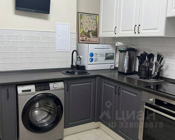 В квартире установлена стильная кухонная мебель со встроенной индукционной варочной панелью с индукционным мостом, встроенная печь СВЧ, вытяжка, стиральная машина. Осталось приобрести кровать или диван для сна и можно жить с комфортом.