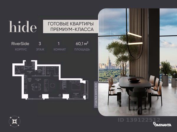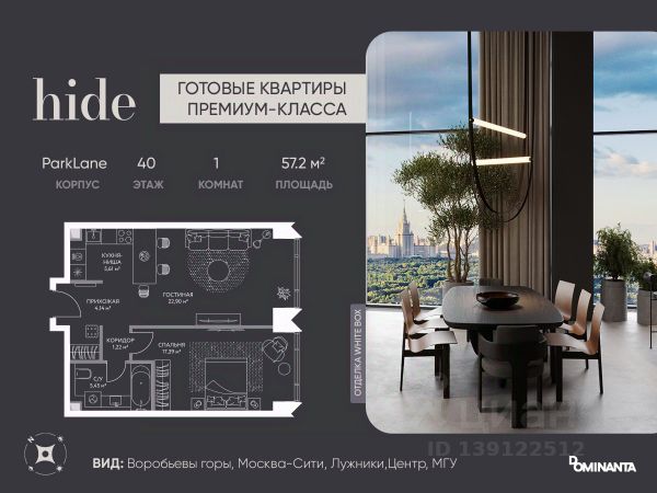 ОТ СОБСТВЕННИКА! Видовая квартира, НЕ апартаменты, с видом на Московский университет и Хамовники с собственной территорией в ЖК Hide премиального класса. Башня West Dale.