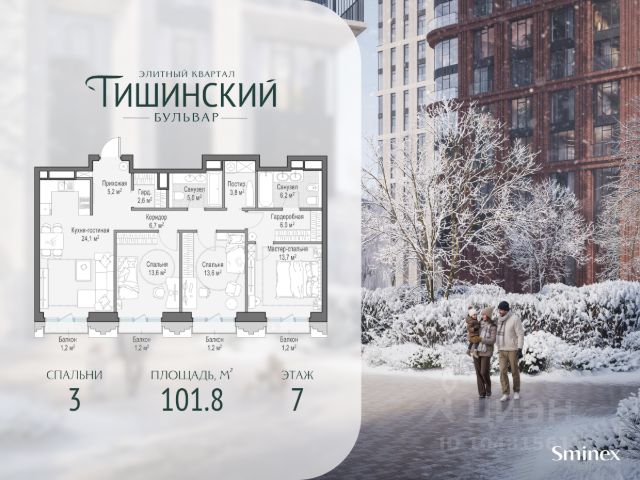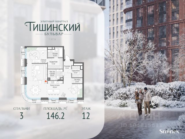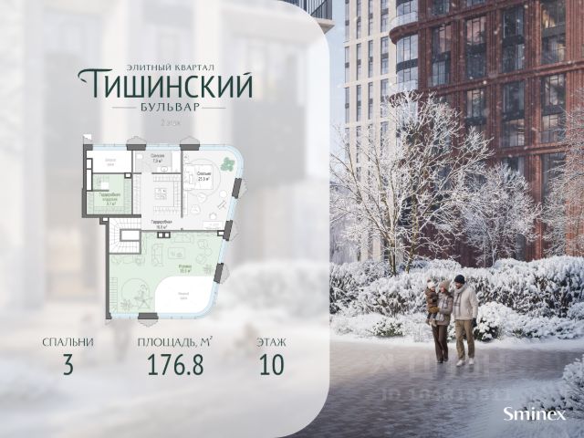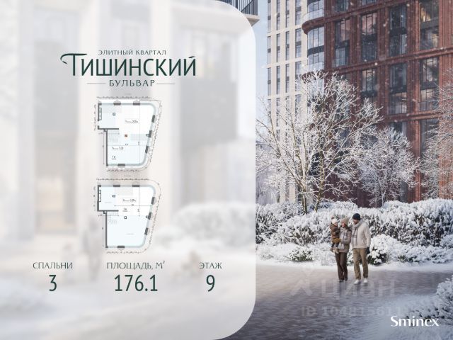 В продаже 4-комнатная квартира квартира в элитном квартале "Тишинский бульвар". Общая площадь квартиры - 170.40 кв.м. Этаж 9 из 11. Корпус К4С2. "Тишинский бульвар" - тихий зелёный элитный квартал на Тишинке, в престижном и комфортном районе центра Москвы. В нём создан уникальный для элитного дома прогулочный бульвар в своём огромном парке 1,9 га. В парке оборудованы зоны для активного и тихого отдыха, крытые галереи, приватные зелёные комнаты, многофункциональная спортивная площадка, воркаут-зона, детская площадка, сухой фонтан, ручей. В пешей доступности Римско-католический кафедральный собор. Всего в полутора километрах от квартала находятся Патриаршие пруды - излюбленное место для летних прогулок, воскресных бранчей и романтических ужинов. Белая площадь расположена ещё ближе - на расстоянии 1,2 километра. Это точка концентрации деловой жизни и модных ресторанов. В "Тишинский бульваре" только для жителей и их гостей создан уникальный для элитного дома прогулочный бульвар в собственном огромном парке площадью 2,1 га, который занимает 70% территории квартала. Бульвар проходит через весь квартал и объединяет в общее пространство три двора: Кленовый, Рябиновый и Ивовый. В парке созданы крытые галереи и приватные зелёные комнаты для отдыха и медитаций в любую погоду. Насыщенное озеленение многолетними растениями с разными периодами цветения сохраняет территорию квартала красивой круглый год. В квартале насыщенная инфраструктура только для жителей, включая Clubhouse. Здесь оборудованы пространства для здорового образа жизни по стандарту FIT LAB: в парке - многофункциональная спортивная площадка, воркаут-зона, место для занятий йогой и медитации; бесплатный фитнес-клуб с бассейном. Для маленьких жителей доступны детская площадка и игровая комната по стандарту KIDS LAB. Дома оснащены самыми полными и лучшими системами.