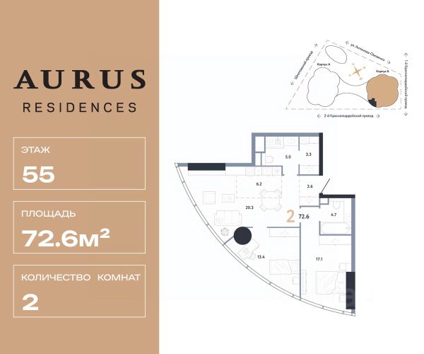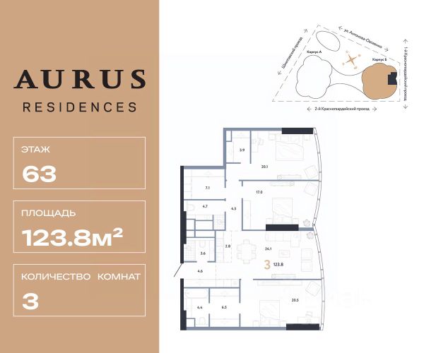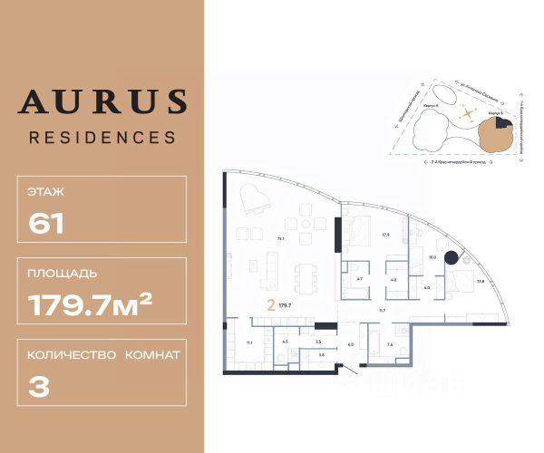 AURUS Residences призван стать символом единства инженерной мощи и эстетики премиум-класса, ведь его авторы — автомобильный бренд, чей аутентичный дизайн, бескомпромиссная безопасность и эталонный комфорт завоевали признание в России и мире, и ведущий девелопер с 20-летним наследием, преображающий ландшафт российских городов своими проектами. Страна.Премиум х AURUS: для тех, кто хочет стать частью новой истории. Это беспрецедентный союз двух индустрий-титанов: передового автомобилестроения и девелопмента, мощь мировой экспертизы и российской инженерной мысли — AURUS и Страна.Премиум. Архитектура AURUS Residences — это яркий архитектурный акцент Москвы, который десятилетиями будет притягивать взгляды. Авторы проекта — архитектурное бюро Apex. Несмотря на грандиозную высоту, башни грациозно взмывают вверх от стилобата, завершаясь изгибами террас, подобно бутонам лотоса, устремлённым к небу. Эта живая, динамичная форма наполняет окружающее пространство лёгкостью и энергией, так нужными вам в центре столицы. Расположение AURUS Residences расположен на юго-западе Пресненского района, в локации с отменной логистикой. Прямой выезд на Третье транспортное кольцо по 2-му Красногвардейскому проезду позволяет быстро добраться до центра, ключевых районов города, аэропортов и аэроэкспрессов, а также выехать в сторону Рублёвского и Новорижского шоссе. Башни AURUS Residences — первый проект масштабного "Сити-2", новой деловой и жилой зоны Москвы. В отличие от первого "Сити", здесь формируется сеть прогулочных маршрутов и зелёных аллей. Они связывают кварталы между собой и создают ощущение спокойного пространства для жизни в центре мегаполиса. Всё лучшее — не выходя из дома Специальные сервисы — от подкаст-студии до лаунджа с панорамным видом — открыты исключительно для вас и ваших гостей. Эксклюзивные развлечения теперь в паре минут от вашей квартиры, без очередей, пробок и суеты. Крытый кинотеатр, Спортивная зона, Барбекю-зона, Лаундж с библиотекой, Ивент-пространство, Бьюти-холл, Детская игровая и Конференц-холл Гранд-лобби На первом этаже вас встречает гранд-лобби, напоминающее атриум бутик-отеля. Пространство под десятиметровыми потолками залито естественным светом из зенитного окна. А в центре интерьера — живые растения и настоящие водоёмы. Попасть сюда могут только жители AURUS Residences, для курьеров и сервисных служб предусмотрен отдельный вход. В лобби вы можете подождать водителя в лаундж-зоне у камина, заказать напиток за баром. Есть и переговорная, где удобно провести короткую бизнес-встречу. Оба входа, с южной и северной стороны здания, совершенны с эстетической и функциональной точки зрения. У каждого входа установлены арт-объекты и выделены зоны drop-off под навесами, чтобы вы не промокли под дождем, выходя из автомобиля. Единственное море в столице Для тех, кто видел многое, кроме моря в центре Москвы. Здесь вода встречается с горизонтом, тихо плещут волны, а дно из натурального камня напоминает скалистое побережье. Это ваш персональный
