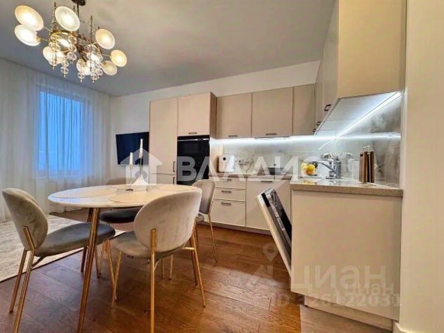 Кухня выполнена по индивидуальному проекту "Стильные кухни", столешница из искусственного камня с литой мойкой, установлен измельчитель пищевых отходов, кран с двойным изливом Германия, встроенная техника премиум класса Neff и Siemens. На кухне и в спальне установлены кондиционеры Energolux.