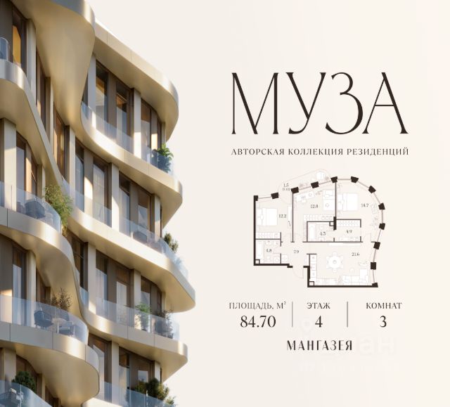 Продается 2-комнатная квартира без отделки, в корпусе 2 общей площадью 90,20 кв.м. на 2 этаже. Всего в МУЗЕ 309 лотов площадью от 37 до 250 м², большинство с балконами и террасами. Высота потолков от 3,5 до 4,65 м. Эксклюзивные форматы: • Пентхаусы без соседей на этаже; • Квартиры с кухнями-гостиными, мастер-спальнями и окнами в гардеробной; • Возможность установки джакузи на террасе и дровяного камина в гостиной; • Часть лотов с опцией объединения по вертикали для создания максимально персонализированного пространства. Атрибуты комфорта • Многоступенчатая очистка воды до уровня, сопоставимого питьевой; • Подача горячей воды круглый год; • Мультизональная система кондиционирования на базе трехтрубной VRF-системы; • Центральная приточно-вытяжная вентиляция с фильтрацией в квартирах и местах общего пользования; • Межквартирные перекрытия с усиленной звукоизоляцией; • Бесшумные лифты с дизайнерской отделкой, время ожидания не более 40 секунд. О проекте МУЗА авторская коллекция резиденций премиум-класса в престижном районе Аэропорт. Выразительная архитектура, авторское благоустройство, эксклюзивная инфраструктура и передовые инженерные решения формируют пространство исключительного комфорта. Аменитис • Круглосуточный фитнес-рум и студия для индивидуальных тренировок; • Детская комната для подвижных игр, творческих мастер-классов и саморазвития; • Акустическая студия для записи песен, подкастов и игры на музыкальных инструментах; • Гостиная для детских праздников, дней рождения и развивающих мастер-классов; • Переговорные и коворкинг. Двор и благоустройство Территория МУЗЫ приватный двор-парк с водным арт-объектом, амфитеатром, "зелеными" кабинетами для уединенного отдыха, зоной воркаут и детскими площадки, созданными при участии экспертов по детской психологии. Для спокойного отдыха на воздухе и работы предусмотрены благоустроенные видовые кровли с лаунж-зоной и коворкингом. Паркинг и келлеры Двухуровневый подземный паркинг с системой климат-контроля на 149 машино-мест, включая восемь уникальных слотов для автомобилей больших габаритов. Преимущества: • Усилители сотовой связи и FM-сигнала; • Зарядные станции для электрокаров; • Автомойка и место для подкачки колес. Технологии • Круглосуточная система видеонаблюдения на территории дома и в местах общего пользования; • Доступ в дом и на этаж по бесконтактным меткам; • Усиление сотовой связи во всех местах общего пользования; • Автоматизированная система доступа в паркинг; • Аромадизайн в местах общего пользования. Сервис • Управляющая компания девелопера; • Консьерж- и беллмен-сервис; • Собственное мобильное приложение; • Дополнительные лифты для разделения резидентских и сервисных потоков.