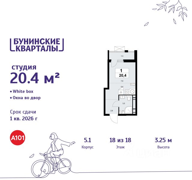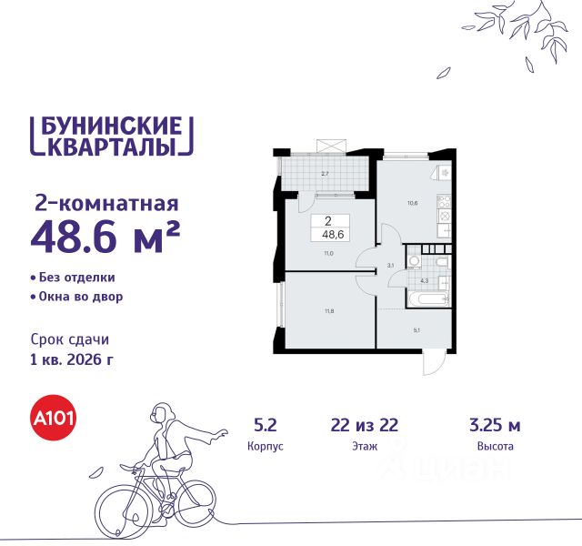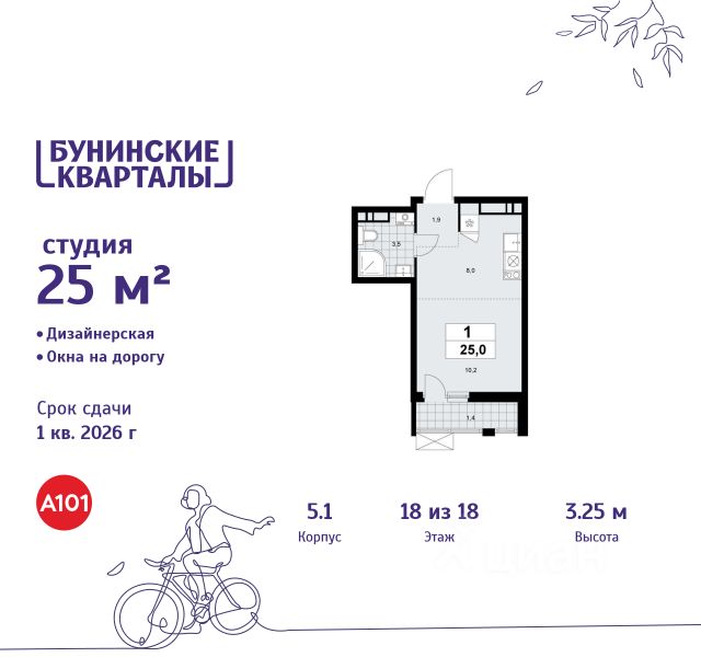 Продается студия 839 в новостройке ЖК "Бунинские кварталы" по адресу Москва, ТиНАО, Новомосковский АО, Сосенское С/П, жилой комплекс Бунинские Кварталы, 5.3, район Коммунарка, Новомосковский административный округ, Москва. Общая площадь квартиры - 22.10 кв. м., этаж 19 из 19, секция 9. Тип проекта, по которому построен дом - монолит, компания-застройщик - ООО "А101". Стоимость квартиры - 12036765 Р. Срок сдачи - 2 квартал 2026.