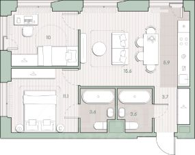 О квартире Продаётся 3-комнатная квартира общей площадью 83.1 кв.м. без отделки. Квартира расположена на 7 этаже корпуса 5.7 в жилом комплексе бизнес-класса "Среда на Лобачевского" в пешей доступности от метро "Аминьевская". О жилом комплексе "Среда на Лобачевского" полностью соответствует критериям современного жилого пространства. Взяв за основу рациональный подход, мы гармонично соединили дизайн, актуальные тренды и функциональность. Продуманный современный экстерьер и функциональные планировки внутри, приватные пространства и разнообразные досуговые зоны для каждого члена семьи — все это "Среда на Лобачевского". Инфраструктура Район отлично развит и наполнен жизнью, здесь уже есть вся необходимая инфраструктура — детские сады, школы, медучреждения, торговые центры, благоустроены парки для прогулок и отдыха, удобен и легкодоступен городской транспорт. Рядом расположены учебные корпуса крупных университетов — МГУ, МГИМО и РАНХиГС. Школы и детские сады в районе занимают высокие позиции в городских рейтингах, поэтому вам не придется беспокоиться о качестве образования детей. Как и об отдыхе: поблизости расположены живописные пруды, реки и парки. Это Парк Олимпийской деревни, Парк имени 50-летия Октября, Мещерский парк и Очаковские пруды. Теперь поставить галочки в еженедельном чек-листе "спорт-прогулки-встречи с друзьями" можно, не покидая любимый район. Особенности Особое внимание в проекте уделяется созданию функциональных пространств не только внутри дома, но и за его пределами. В ландшафтном парке "Среды на Лобачевского" расположены крытые зоны для спокойного времяпровождения, места для активного отдыха и спорта, коворкинг, соседский комьюнити-центр, водные объекты. —Ландшафтный парк во дворе. —Водный сад с зонами отдыха. —Зоны коворкинга. —Дизайнерские гранд-лобби. —Бесключевой доступ. —Подземный паркинг.