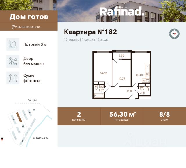 Фитнес-центр с бассейном, торговые центры, кафе, детские центры по развитию ребенка, школы, д/сады, остановки транспорта 3 мин.