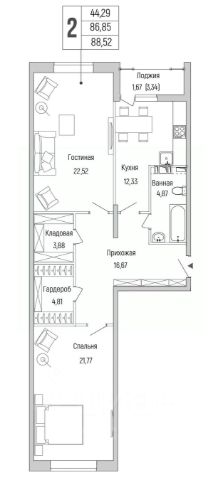 В интерьере использованы качественные материалы и надёжное оборудование: итальянская сантехника, оригинальная немецкая электрика ABB, тёплый пол польского производства в четырёх зонах — коридоре, кухне, санузле и на утеплённом балконе. Установлены умные проходные выключатели освещения и мастер-выключатель, благодаря которым управлять светом удобно из любой точки квартиры. Идеальный вариант для тех, кто ищет современное жильё с качественной отделкой и функциональными решениями.