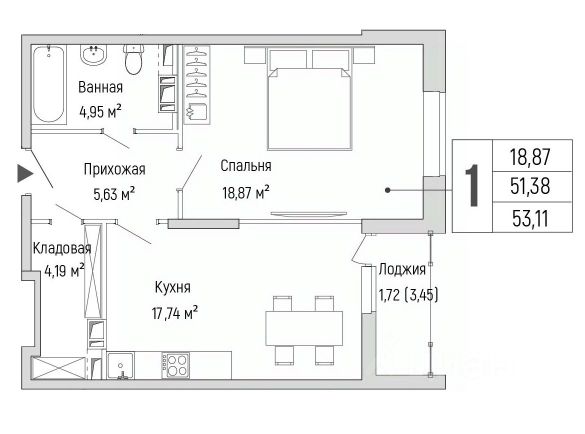Балкон утеплён и подходит для использования круглый год — там приятно выпить утренний кофе или поработать в тишине. Пространство организовано удобно, с множеством мест для хранения, при этом квартира остаётся светлой и просторной. Прекрасный вариант для удалённой работы или организации личного уголка.
