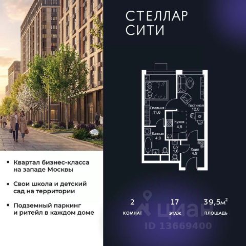 Продается квартира от надежного застройщика Tashir Estate в квартале бизнес-класса Stellar City в ЗАО Москвы. Площадь квартиры составляет: 30.8 кв. м, потолки: 3.1 м Квартира находится на 9 этаже, 4 корпуса жилого квартала Stellar City — микрогорода будущего на орбите Москвы. Stellar City — квартал в ЗАО Москвы вблизи инновационного центра Сколково. В окружении — 11 парков и природных зон, в том числе Долина реки Сетунь, Мещерский лес и парк развлечений The Rink. Город в городе Чтобы дом и инфраструктура вокруг отвечала динамичному лайфстайлу жителя мегаполиса, в основу проекта легла концепция город в городе, которая позволяет решать все бытовые вопросы in-home. В квартале будут возведены школа и детский сад, воркаут-зоны, променад, вело и беговые дорожки, детские площадки для каждого корпуса, а также коммерция на первых этажах для ежедневных покупок. Все необходимое — на расстоянии нескольких шагов. Изящные и лаконичные лобби Авторский дизайн, натуральные материалы в отделке и безупречный интерьер вне времени. Лобби и холлы в проекте бизнес-класса Stellar City ничем не отличаются от входных групп в премиум-сегменте благодаря качественным европейским материалам в отделке, стильному дизайну, консьерж-сервису и уютной зоне ожидания с журнальными столиками и мягкой мебелью. Комфорт и безопасность Закрытая территория, охрана, система СКУД, специально разработанное мобильное приложение дома для резидентов и подземный паркинг с круглосуточным наблюдением и доступом с помощью автоматического считывания номера авто.