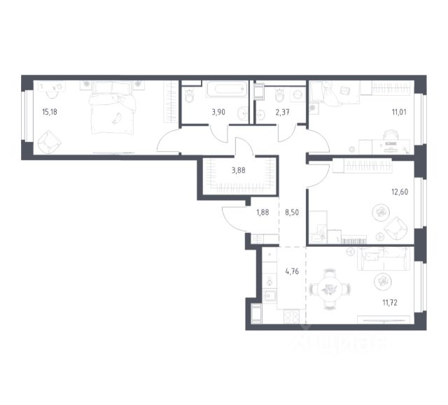 застекленная и утепленная лоджия с инфракрасным и электрическим подогревом (4,3 кв.м.), просторная кухня-гостиная (21.9 кв.м.), огромная спальня (22,9 кв.м.), которую можно перепланировать в 2 комнаты, просторная гардеробная комната (4,6 кв.м.), коридор (8,2 кв.м.), один совмещенный санузел (8,4 кв.м.). Натяжные потолки, высота потолков 3-3,1 м.