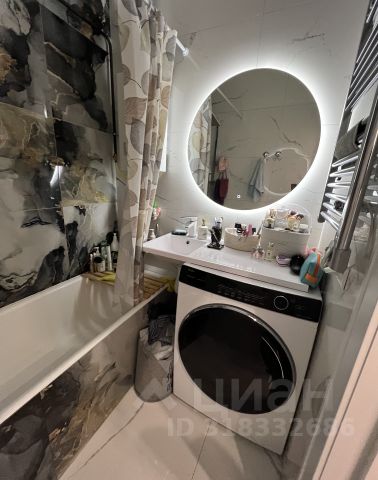 Ванная комната с душевой кабиной со спа эффектом, большой раковиной с просторной тумбой для хранения, бойлер, стиральная машина, подведены коммуникации для просторной джакузи, телевизор в ванной! Электрический теплый пол.