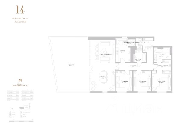 Продается просторная квартира площадью 152.10 м2 в жилом комплексе ДОМ XXII. Квартира находится в 3 секции корпуса 1. Этаж 3-й из 12. Квартира без чистовой отделки, с просторной кухней 40.90 м2. Жилая площадь 55.30 м2. Высота потолка от 3.50. ДОМ XXII расположен в Хамовниках - одном из самых респектабельных и тихих районов Москвы. Прямо напротив дома - Новодевичий монастырь, по соседству - Саввинская набережная Москвы-реки и сквер Девичьего поля. Расположение дома позволяет за считанные минуты добраться до всех знаковых мест столицы. Например, на автомобиле до Садового кольца 5 минут, до Дома Правительства - 8, до Кремля - 10. Неоклассический архитектурный проект переменной этажности (9-12 этажей) выполнен мастерской "Сергей Киселев и Партнеры". Фасады облицованы натуральным мрамором и гранитом, их оригинальный декор создан Андреем, Павлом и Петром Наличами. Благородный силуэт дома подчеркнут французскими балконами и моллированным остеклением на углах. В доме всего 109 квартир: лоты с патио, пентхаусы с панорамными террасами и возможностью установки камина, а также классические элитные квартиры с большими гостиными, мастер-спальнями, приватными ванными и гардеробными, террасами и лоджиями. У дома предусмотрена зона дроп-офф. В интерьерах лобби использованы люксовые отделочные материалы, эксклюзивные световые инсталляции, декоративное озеленение. Премиальную атмосферу дополняют зенитный фонарь с естественным светом, водопад, лаунж у камина и библиотека. Площадь лобби 660 м2, высота потолков - до 6,5 м. Двор превращен в тихий усадебный парк площадью 490 м2. Здесь создана приватная атмосфера для уединенного отдыха: дубовая аллея, пруд с живописным мостиком, галерея-берсо, зеленые комнаты, садовый камин, фонтаны. Для детей - игровая площадка. Для занятий спортом - воркаут. Предусмотрен контроль доступа на территорию, круглосуточная охрана, видеонаблюдение. Неподалеку находятся лучшие школы: 57, 1535, Филипповская школа, школа "Золотое Сечение". Для знатоков гастрономии рядом - лучшие рестораны: Verd, Peach, "Сахалин", Modus, Soho Rooms, модный гастрономический кластер "Усачевский рынок". Для занятий спортом - спортивный комплекс "Лужники". Для ценителей искусства - Московский дворец молодежи