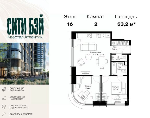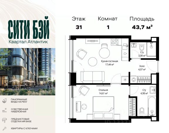 Прямая продажа от застройщика. Продаётся 2-комнатная квартира общей площадью 51.67 м² с предчистовой отделкой в ЖК Сити Бэй на 8-м этаже 53 этажного дома. Концепция жилого комплекса Сити Бэй - настоящий город в городе с отлично развитой инфраструктурой и собственной благоустроенной набережной. На территории жилого комплекса расположено пять кварталов - Атлантик, Пасифик, Индиан, Норс, Клиф. Жилой квартал Сити Бэй отличается оригинальной концепцией и выделяется среди других проектов такими характеристиками как: - Архитектура, - Виды из окон, - Природное окружение, вызывая гордость у жителей и восхищение у прохожих. Вся жизнь района Покровское-Стрешнево строится вокруг водных объектов: - Пойма реки Сходни с уникальной экосистемой, - Речка Химка и Химкинское водохранилище, - Москва-река, - Канал имени Москвы. Кругом вода, и местные с удовольствием этим пользуются. А сразу за рекой - центр водного спорта в Строгино с вейк-парком и яхт-Клубами. Помимо воды, здесь очень много зелени: - Рядом Сходненский ковш памятник природы, естественный амфитеатр глубиной 40 метров; - Парк при усадьбе Братцево с фруктовым садом; - Дубовая роща "Маяк", - Алешкинский лес; - Лесопарк Покровское-Стрешнево с пляжами и бобрами. Главные транспортные артерии района: - Волоколамское шоссе, - Таганско-Краснопресненская линия метро и МЦД-2. Всего за 20 минут можно добраться до центра на машине или метро, а МЦД связывает ЖК Сити Бэй с северными, восточными и юго-восточными районами. Компания MR предлагает своим клиентам специальные условия приобретения квартир в рамках программ ипотечного кредитования от банков-партнеров.