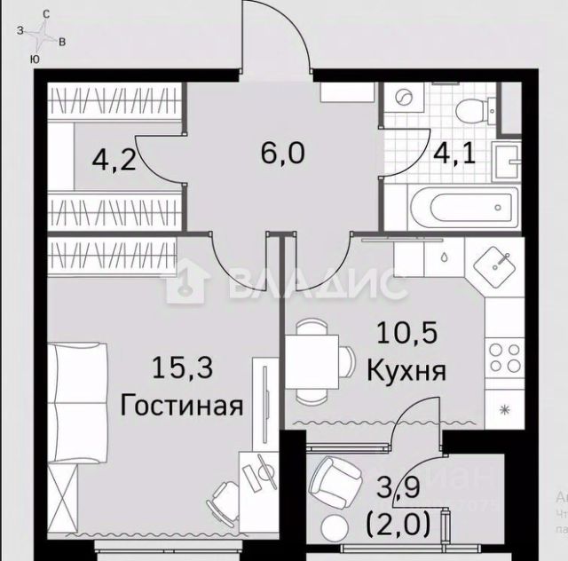 • Евроформат. Используйте пространство как вам удобно: большая кухня-гостиная или изолированная спальня и кухня,