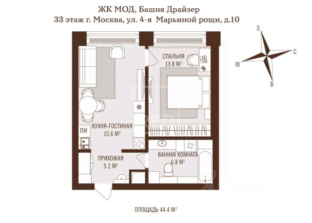 Прямая продажа от застройщика. Продается 3-комнатная квартира общей площадью 85.40 м² с предчистовой отделкой в ЖК премиум-класса Мод на 7-м этаже 44 этажного дома. Мод - жилой комплекс премиум-класса в историческом районе Москвы Марьина Роща, состоящий из трех Клубных домов (9 этажей) и трёх разноэтажных башен (44-55 этажей). Закрытая территория жилого комплекса, продуманное благоустройство, эксплуатируемые кровли стилобата, образовательный центр с детским садом создают приватное пространство для тихой семейной жизни, а городская площадь с фонтанами, ресторан, супермаркет, коммерческая инфраструктура на первых этажах привносят созвучную с ритмом города динамику. Преимущества проекта: • В шаговой доступности новый деловой кластер Москвы • Выразительная авторская архитектура • Единственные в Москве фасады башен из натурального камня • Панорамное остекление и высота потолков до 4,8 м • Квартиры и апартаменты с отделкой MR Base • Многоуровневое благоустройство с зонированием на закрытой территории • Многофункциональный образовательный детский центр с детским садом • Двухуровневый подземный паркинг Транспортная доступность: • 5 минут пешком до станции метро "Марьина роща" • 3 минуты до ТТК • 15 минут до Цветного бульвара Компания MR предлагает своим клиентам специальные условия приобретения квартир в рамках программ ипотечного кредитования от банков-партнеров.