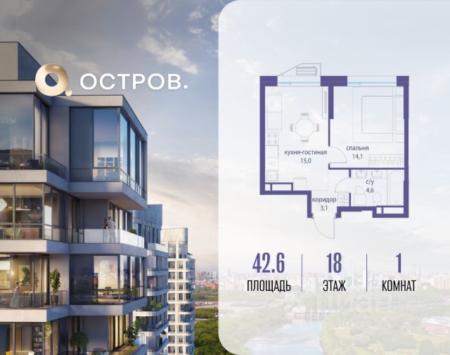 Продаётся 2-комн. квартира от застройщика: общая площадь 70.20 м², жилая м², кухня м², 8-й этаж, жилой квартал "Остров 14", корпус 6 (секция 1). Срок сдачи: 2 квартал 2029 года. . В жилой зоне 2 больших окна на одну сторону, хорошая инсоляция. Позвоните сейчас и забронируйте квартиру! ОСТРОВ от Донстрой - жилой комплекс на западе Москвы, в Мневниковской пойме. Уникальное преимущество комплекса - в том, что он обособлен от города рекой и природным парком (650 га). Благодаря природному окружению эта территория имеет лучший экологический рейтинг в столице. Кварталы ОСТРОВА объединены ландшафтным дизайном в единое пространство - с набережными и Центральным бульваром. На ОСТРОВЕ любые объекты, необходимые для полноценной жизни и отдыха, находятся на расстоянии 15-минутной прогулки. Торговый центр и супермаркеты, кафе и рестораны, фитнес, салоны красоты, школы и детские сады. А также крупнейший в Москве спортивный кластер.