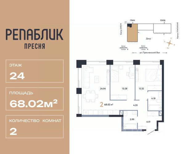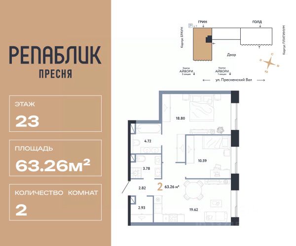 Рассрочка 0% с первым взносом от 20%, ипотека с субсидией или наличные. Подберём способ оплаты индивидуально. Продается 2комнатная квартира на 20 этаже от застройщика Страна Девелопмент. Площадь квартиры 50.38 кв. м. Дизайн-квартал "Republic" — новый проект премиум-класса в Москве от федерального застройщика "Страна Девелопмент". ЦАО, Пресня, 7 мин. от метро "Белорусская". 10 жилых башен и 4 восстановленных здания локомотивного депо образуют уникальное пространство. "Republic" — место, где вы ощутите гармонию истории и современности. За 12 мин. вы сможете дойти до Московского зоопарка, за 10 мин. на авто доехать до Патриарших прудов и Белого дома. Преимущества • Благоустройство. SPA-комплекс с бассейном и термами, гастрономический, учебный и шопинг-центры, приватный бульвар и яркие арт-пространства — для жителей предусмотрены все элементы премиального комфорта. • Панорама на центр. Наслаждайтесь видами ЦАО каждый день: панорама на историческую Пресню и башни Москва-Сити — из своей квартиры или с приватной террасы на крыше. • Концептуальное лобби в каждой башне. С общей террасой на кровле, с библиотекой, коворкингом и фитнес-рум. Стойка консьержа перетекающая в бар и др. • Современные форматы квартир. Свободные планировки, с террасой или балконом, с возможностью установки камина, от 1-комнатных до пентхаусов. Отделка Квартиры сдаются без отделки или в формате White box. При White box уже выполнены все шумные и грязные работы: произведена разводка электричества с подрозетниками, установлены откосы из гипсокартона, устроена стяжка пола с шумоизоляцией и др. Способы покупки Сотрудники "Страна Девелопмент" будут сопровождать вас на каждом этапе сделки, помогут получить одобрение по ипотеке или снизить ежемесячный платеж. - ипотека (стандартная/с субсидией/траншевая) - рассрочка (с ПВ от 20%) - с использованием материнского капитала - оплата наличными