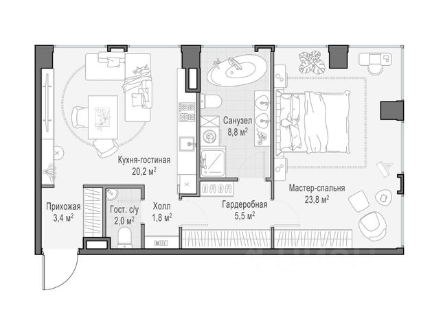 194738 ЖК Квартал Redside Представляем к продаже премиальную квартиру в престижном жилом комплексе премиум-класса RedSide — воплощении изысканного комфорта и статуса в центре Москвы. Интерьер квартиры отражает роскошь натуральных материалов: благородный шпон ореха в отделке, паркет из ореха, мрамор из Испании и Италии. Особого внимания заслуживают дизайнерские акценты — панно из оникса в гостиной и раковины из оникса. Сантехника бренда Keuco, ванная и раковина от Villeroy. Квартира оснащена современными инженерными системами: • канальная система кондиционирования — Mitsubishi Electric; • приточно-вытяжная система; • бытовая техника ведущих брендов (включая холодильник Liebherr и винный холодильник Liebherr). Дополнительно: блок из двух широких машино-мест. RedSide — это 8 монолитно-кирпичных зданий с облицовкой юрским мрамором на территории 5 гектаров, из которых 3 гектара отведены под озеленение с прогулочными зонами, детскими площадками и дорожками для велопрогулок. К услугам резидентов: консьерж-сервис 24/7, двухуровневый паркинг на 1 400 мест, фитнес-клуб World Class с 50-метровым бассейном и частный детский сад. Локация открывает доступ к лучшим точкам города: в шаговой доступности находятся парк "Красная Пресня", Москва-Сити, набережная Москвы-реки и Московский зоопарк. До Садового кольца и ТТК — 7 минут, до метро "Улица 1905 года" — всего несколько минут пешком. Экосистема Kalinka недвижимость для счастья.