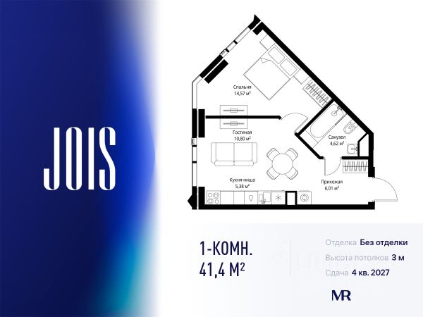 10 минут от Москва-Сити В продаже квартира площадью 22.67 м² с предчистовой отделкой на 14 этаже 55 этажного дома. Квартира расположена в корпусе Anna. JOIS это премиальный жилой комплекс от девелопера MR в районе Хорошёво-Мнёвники. Он включает несколько эффектных небоскрёбов высотой 47-56 этажей, эксклюзивные форматы квартир с панорамным остеклением, подземный двухуровневый паркинг на 239 м/м, собственную приватную инфраструктуру, закрытый ландшафтный парк 2,3 Га с функциональным зонированием и охраняемой территорией. Над проектом работали лучшие команды международных агентств с многолетним опытом: Genpro, S&P, iLight International и другие. Расположение Пешком: - 5 мин. ст. МЦК "Хорошёво"; - 15 мин. ст. м. "Народное ополчение"; - 10 мин. ст. метро "Звенигородская" с 2027 года; - 20 мин. причал "Карамышевский". На автомобиле: - 3 мин. до Звенигородского шоссе; - 5 мин. до ТТК: - 8 мин. до Серебряного бора и Строгинского затона - 10 мин. до ММДЦ "Москва-Сити"; - 40 мин. до аэропорта "Шереметьево"; Благоустройство - собственный ландшафтный парк 2,3 Га; - парк скульптур от Cosmoscow; - консьерж-сервис 24/7; - сервисный лифт и вход; - игровые и спортивные площадки; - коворкинг с библиотекой; - лаунж-зона с камином; - игровые комнаты для детей и клуб для подростков с оборудованием для видеоигр; - спортивная студия для индивидуальных тренировок; - гостиная с мини-кухней; - зоны для выгула собак; - подогрев пешеходных дорожек в зимний период; - автополив зелёных насаждений; - премиальные рестораны, кафе, химчистки, аптеки и супермаркеты. Окружение - 4 парка: Покровское-Стрешнево, Филёвский парк, Серебряный бор и Берёзовая роща; - 15 общеобразовательных заведений, в том числе две школы из самых лучших в Москве: государственная школа "Интеграл" и частная "Хорошкола"; - спортивное сооружение "ВЭБ Арена", домашний стадион ФК ЦСКА; - крупнейший в Европе торгово-развлекательный центр "Авиапарк".