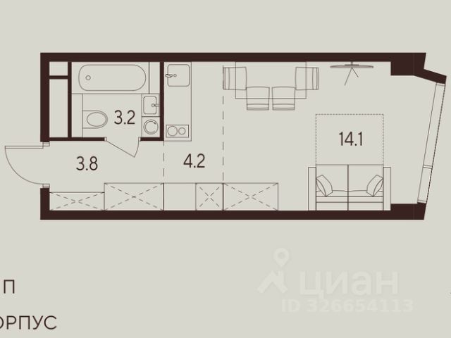 Площадь: 32,3 м² в документах, фактическая 34, присоединена еще зона кондиционирования.