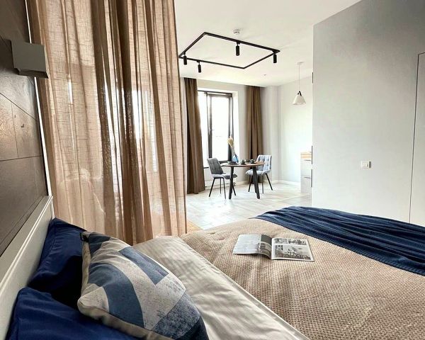 Продаётся новая светлая студия с качественным ремонтом на 23 этаже в ЖК бизнес-класса "Метрополия", корпус 7 Париж. Площадь 24,5 кв.м.