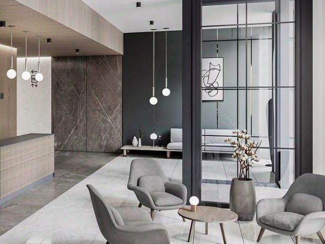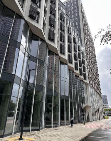 В доме чистый, просторный холл, несколько лифтов. Домофон с проходом по отпечатку пальца, автоматические двери. В лобби находится охрана. Закрытая территория без машин (парковка подземная) На территории ЖК находится большая детская площадка, спортивная площадка, несколько ресторанов и баров, пекарня, маникюрный салон, барбершоп, а также аптека, продуктовые магазины.