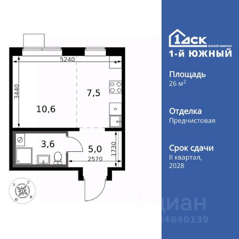 Прямая продажа от застройщика! Жилой Комплекс класса Комфорт Плюс. Продаётся квартира-студия номер 747 общей площадью 26.4 кв.м. на 5-м этаже 25 этажного здания. Предчистовая отделка. Цена с учётом скидки. Особенности квартиры: - МЦД-5 в пешей доступности - Квартал с южным садом - Свои 3 детских сада и 2 большие школы - Организуем показ в удобное для вас время! - Линейная планировка - максимальная функциональность и удобство. - Увеличенное количество окон - дополнительное освещение и свежий воздух. - Линейная кухня - функциональность и практичность в одном решении. - Ниша под шкаф - компактное и удобное место для вещей. Квартира с предчистовой отделкой. Вам не придется заниматься черновыми и трудоёмкими работы, а чистовую отделку и дизайн - сделайте на свой вкус. Информация о комплексе: ЖК от 1-го ДСК: евро формат, большие застеклённые лоджии и умный дом. Управляйте светом и техникой через Яндекс.Станцию, защита от протечек. Удачная локация: транспортная доступность и природа рядом. В каждом дворе - плодовые деревья, весной цветут яблони и груши, зимой - лыжня среди заснеженного леса. Транспортная доступность: - Общественный транспорт: Действующая ж/д станция Булатниково (в перспективе будущая МДЦ D5) в пешей доступности, всего 10-12 минут. - Личный автотранспорт: Удобный выезд на трассу М4-Дон в сторону Москвы и области 850 м, до МКАД - 1 км Внутренняя инфраструктура: "1-й Южный": продуманные подъезды с панорамным остеклением и входами с улицы и двора. Безбарьерная среда для родителей с колясками и маломобильных жителей. В каждом подъезде - колясочные, лапомойки, санузлы, место для консьержа. На территории: 3 детских сада и 2 школы под окнами, пешеходный бульвар-дендрарий для прогулок, центральная площадь для мероприятий. Всё для комфортной жизни, общения и активностей в шаговой доступности. Квартира с предчистовой отделкой - ваш дизайн без черновых работ