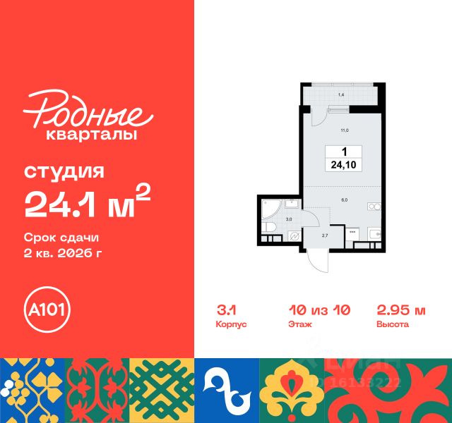 Строим кварталы для жизни с заботой о будущем. Предлагается студия комфорт-класса площадью 26,46 кв.м в корпусе 9 на 4-м этаже, в жилом комплексе "Квартал Западный". Застройщик сдает квартиры с отделкой в нескольких вариантах: предчистовая, готовая, улучшенная или вариант без нее. Последний подойдет тем, кто хочет создать свой уникальный интерьер и ничем себя не ограничивать. А если не хочется тратить время на ремонт, можно выбрать опцию — с отделкой. Перед тем как отдать ключи, застройщик установит натяжные потолки, поклеит обои под покраску, положит ламинат светлых тонов, а в санузлах — керамическую плитку и керамогранит. Приобрести квартиру возможно по специальным акциям от застройщика, с текущими условиями акций можно ознакомиться в блоке "Акций". Цена динамическая и может отличаться, уточняйте актуальность у застройщика. Жилой комплекс в окружении лесопарков и рядом с рекой. До станции МЦД-4 "Санино" можно дойти пешком за 7 минут, а на территории проекта появится транспортно-пересадочный узел с торговым центром. Для жителей построят школу, 2 детсада, в одном из которых будут развивающие кабинеты-трансформеры. Дворы — тихое зеленое пространство без машин. В проекте появится собственный ландшафтный парк с благоустроенной набережной и центральная площадь, на которой будут проводиться различные мероприятия. Высота домов — от 5 до 15 этажей. Фасады выполняют в естественных оттенках, в соответствии с дизайн-кодом "Полевой луг". У каждой секции — свое цветовое решение. Белый цвет верхних этажей добавляет застройке легкости. Фасады облицованы клинкерным глазурованным кирпичом, который используют в проектах бизнес-класса.