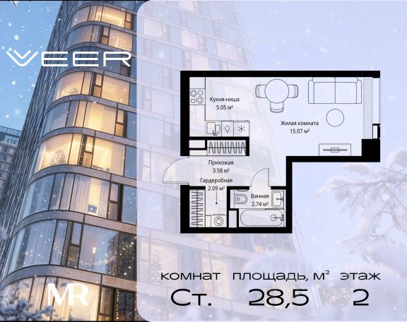 Прямая продажа от застройщика. В ЖК SET продается студия площадью 23.30 м², расположенная в корпусе 2, на 3 этаже 59 этажного дома. SET имеет стратегически выгодное расположение в ЗАО, в районе с большой историей и блестящим будущим: между природной зоной долины реки Сетунь и Кутузовским проспектом. В рамках возведения первой очереди предусмотрено три корпуса высотой 18, 45 и 59 этажей. На верхних этажах спроектированы общедоступные смотровые площадки с панорамным обзором на центр столицы. Преимущества проекта: • Функциональные планировочные решения • Контроль проникновения через входную дверь • Система управления освещением и температурой в квартире • Система защиты от протечек с функцией перекрытия воды • Вход в подъезд по биометрическим считывателям Face ID • Скоростные лифты • Двухуровневый подземный охраняемый паркинг на 495 машино-мест Застройка SET включает в себя не только жилые корпуса, но и инфраструктурные объекты. Все необходимое для повседневного комфорта будет расположено в шаговой доступности: • Фитнес-клуб с бассейном • Ведущая городская школа, детский сад и школа искусств • Центр культуры и досуга • Медицинский центр • Кафе и рестораны Расположение комплекса: Пешком: • Метро "Давыдково" - 17 минут • Парк "Долина реки Сетунь" - 3 минуты • Открытие новых станций метро в шаговой доступности в будущем Инфраструктура: Разнообразить свой день резиденты VEER смогут также проводя больше времени на свежем воздухе. Двор разделен на 4 зоны разных эмоций и действий, которые пересечены и соединены веерными прогулочными маршрутами: • Спортивная площадка устроена в глубине ""Кленовой рощи"" • В ""Чайном домике"" будет создан навес с утеплением для отдыха в любую погоду • Площадки для детей воплотятся в ""Волшебный лес"" с цветами, зеркалами и световым дизайном • ""Центральная площадь"" устроена у водного оазиса живописного пруда. " На машине: • "Москва-Сити" - 15 минут • Садовое кольцо - 20 минут • ТЦ "Океания" - 8 минут • ТЦ "Времена года" - 13 минут • Сколково - 12 минут • Гребной канал - 17 минут Компания MR предлагает своим клиентам специальные условия приобретения квартир в рамках программ ипотечного кредитования от банков-партнеров.