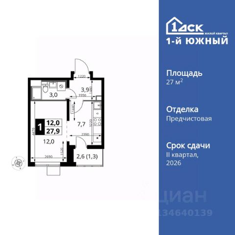 Прямая продажа от застройщика! Жилой Комплекс класса Комфорт Плюс. Продаётся квартира-студия номер 1 общей площадью 26.2 кв.м. на 2-м этаже 24 этажного здания. Без отделки. Особенности квартиры: - МЦД-5 в пешей доступности - Квартал с собственной набережной - Свои 2 детских сада и школа - Линейная планировка - максимальная функциональность и удобство. Информация о комплексе: Комплекс 1-й Донской расположен в 7 км от МКАД по трассе М-4 Дон. В нем сочетаются все плюсы комфортной городской среды и природного окружения. В проекте достаточно большой процент квартир, выходящих на 2-3 стороны света. Секции-маяки формируют у зданий визуальную L-форму, что придает застройке структуру и ритмику объемов. На ощущение динамики работает и разная этажность зданий. Теплая цветовая палитра фасадов отражает природу Дона. Вечерами дома преображаются благодаря архитектурной подсветке, выгодно выделяясь на городском фоне. Природа оказывает положительное влияние на человека на всех уровнях восприятия: через зрение, запахи, звуки, тактильные ощущения. Неподалеку от ЖК Первый Донской: Ермолинский парк, Видновский лесопарк, Жуковский парк Транспортная доступность: Комплекс удобно расположен в 7 км от МКАД по трассе М-4 Дон (через Видное). Расстояние до Каширского шоссе составляет 12 км. Добраться до метро и центра Москвы позволяет развитая сеть маршрутов общественного наземного транспорта. Действующая ж/д станция Калинина Павелецкого направления в 15-17 минутах ходьбы (МЦД-5 в 2025-2026 гг). Внутренняя инфраструктура: Проект 1-й Донской соседствует с бурно развивающимся районом, основная инфраструктура которого уже сложилась. В строительстве современных жилых комплексов в округе есть свои плюсы: здесь формируется продуманная и комфортная городская среда. Что касается внутренней инфраструктуры, на территории квартала будут расположены собственные муниципальные 2 детских садика и школа, которые помогут совместить приятное с полезным. Территория комплекса пронизана целой сетью живописных пешеходных маршрутов, позволяющих попасть в любой уголок района. Основные пути, как водится, "торговые". Они проходят вдоль магазинов, кафе и других представителей коммерции и отделяются от проезжей части зеленой "фито" - стеной. Среди крупных социальных объектов предусмотрены своя поликлиника и торговый центр с примыкающей площадью для общественных мероприятий. Уют начинается с продуманного подъезда. Сквозные подъезды наполнены светом благодаря сплошному остеклению. Вход в них есть и с улицы, и со двора.