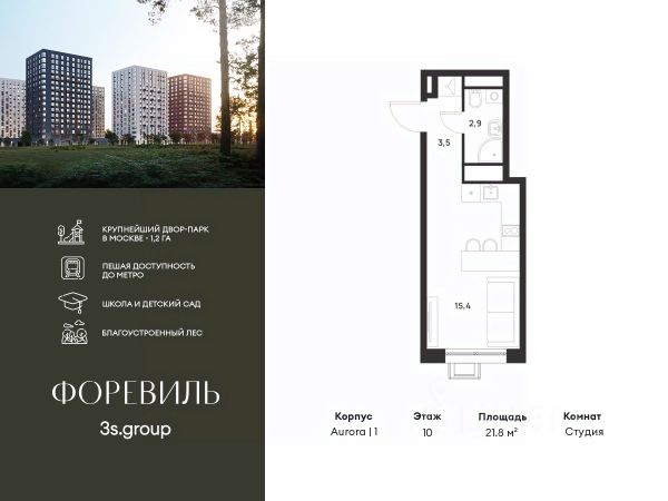 Предчистовая отделка в подарок! Пешая доступность от метро и московская прописка! Продается уютная студия площадью 24,3 кв.м на 13 этаже 17 этажного жилого комплекса бизнес-класса Foreville от 3S Group. Общая площадь: 24,3 кв.м., жилая: 11,6 кв.м., площадь кухни-гостиной: 6 кв.м., высота потолков: 2,72 м., окна выходят во двор. Квартира предлагается без отделки, что идеально подходит для воплощения собственного дизайнерского решения. Также доступна опция предчистовой отделки, стоимость которой включается в общую цену квартиры. О проекте: Пространство Комплекс располагает крупнейшим приватным двор-парком в Новой Москве площадью 1,2 Га, предлагая жителям огромное пространство для отдыха, спорта и игр на свежем воздухе. Природный ландшафт Внутренний лесопарк с более чем 183 взрослыми деревьями и 10 320 цветущими кустарниками создает уникальную природную атмосферу для каждого времени года. Игровые и спортивные зоны Обширные площадки с безопасным покрытием, специализированные зоны для детей разных возрастных групп и взрослых, включая воркаут и настольный теннис, способствуют активному и здоровому образу жизни. Экологичность и долговечность Использование натуральных материалов, таких как лиственница, и крупноформатной бетонной плитки для покрытия, подчеркивает стремление проекта к экологичности и устойчивости. Безопасность и уединение Внутренний двор без машин обеспечивает безопасность для детей и спокойствие для взрослых. Территория огорожена и находится под круглосуточным видеонаблюдением. Сохранение времени Благодаря превосходной транспортной доступности и близости к новой станции метро Корниловская, Foreville позволяет жителям экономить время для семьи и отдыха на природе, минимизируя необходимость длительных поездок. Foreville не просто жилье, а целая экосистема для комфортной и гармоничной жизни на свежем воздухе, совмещая преимущества городской инфраструктуры и непосредственную близость к природе.