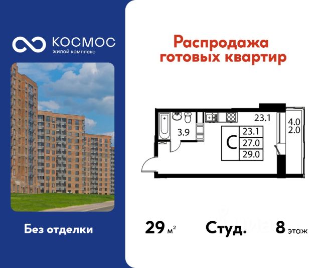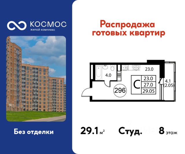 Продаётся студия в сданном доме (Корпус 4), срок сдачи: 2-кв. 2025, общей площадью 29.00 кв.м., на 11 этаже. ЖК "Космос" - новое место для жизни, в котором сочетаются отличная экология, удобное расположение, креативные решения архитектуры и функциональные планировки квартир. Строительство жилого комплекса ведётся при проектном финансировании Сбербанка. ЖК "Космос" расположен в микрорайоне Авиационный (Домодедово), в 24 километрах от МКАД по Каширскому шоссе. Проект будет состоять из 7 корпусов высотой 12 этажей. На первых этажах домов запланировано открытие необходимых для жителей объектов торговой и социальной инфраструктуры, в том числе магазинов, кафе, медицинского центра. В микрорайоне Авиационный также есть всё необходимое для комфортной жизни - здесь находятся детские сады, школы, высшие учебные заведения, магазины, поликлиники и медицинские центры, спортивный клуб, ТЦ "Торговый город". Помимо этого, жители ЖК "Космос" смогут пользоваться развитой инфраструктурой г.о. Домодедово - до него можно добраться за 20 минут на автомобиле или электричке. Одна из особенностей ЖК "Космос" - отличное экологическое состояние локации. В 10 минутах ходьбы от комплекса находится благоустроенный парк "Взлёт" с красивым прудом Лесным, здесь планируется дальнейшее благоустройство территории. Рядом с "Космосом", на площади Гагарина, будут проходить городские мероприятия. Проект отличается удобной транспортной доступностью - до МКАД можно добраться за 20-25 минут. Около жилого комплекса находятся остановки общественного транспорта, в пешей доступности - ж/д станция "Авиационная" Павелецкого направления. На придомовой территории ЖК "Космос" предусмотрено устройство парковочных мест численностью 544 машино-места, в том числе для маломобильных групп населения.