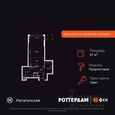 • ✓ В базе Циан 39 квартир-студий без ремонта рядом с метро Нагатинская
