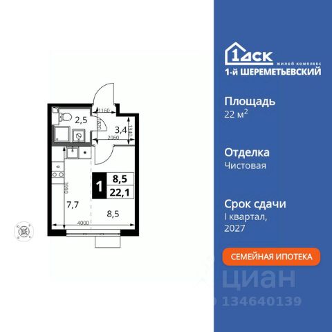 Прямая продажа от застройщика! Жилой Комплекс класса Комфорт Плюс. Продаётся квартира-студия номер 806 общей площадью 27.9 кв.м. на 4-м этаже 16 этажного здания. Предчистовая отделка. Цена с учётом скидки. Особенности квартиры: - Организуем показ в удобное для вас время! - Линейная планировка - максимальная функциональность и удобство. - Увеличенная ширина окна/окон - больше света и визуального простора. - Гибкая планировка - создайте пространство по своему вкусу. - Можно оборудовать рабочее место - комфорт для работы и учёбы. - Линейная кухня - функциональность и практичность в одном решении. - Гардеробная - удобство для хранения и организации вещей. Квартира с предчистовой отделкой. Вам не придется заниматься черновыми и трудоёмкими работы, а чистовую отделку и дизайн - сделайте на свой вкус. Информация о комплексе: ЖК "1-й Шереметьевский" в центре Подрезково: 6 минут пешком до ж/д станции и МЦД-3. Яркие лобби, колясочная, лапомойка и гостевой санузел на первом этаже. Два лифта, кладовые и подземный паркинг в корпусах 3-5. Разнообразие планировок с большими кухнями-гостиными, двумя санузлами от 40 кв.м и остеклёнными лоджиями. Умный дом с защитой от протечек и мобильным управлением электроприборами. Транспортная доступность: - Общественный транспорт: До ближайших станций метро Планерной и Войковской около 40-50 минут на автобусе. 6 минут до ЖД станции Подрезково (МЦД-3) - Личный автотранспорт: Удобный выезд на Ленинградское шоссе позволяет быстро добираться до МКАДа и в центр Москвы, до платной трассы М11 и в аэропорт Шереметьево. - 3 минуты до Ленинградского ш. - 10 минут до платной трассы М11 - 15 минут до МКАД - 20 минут до ст. м Войковская - 25 минут до ст. м Планерная Внутренняя инфраструктура: "1-й Шереметьевский": жизнь в шаговой доступности. На первых этажах - магазины со свежими продуктами, кофейни, химчистки и салоны красоты для повседневных нужд без поездок. Собственная школа на 1100 учеников с бассейном и детский сад на 400 малышей с музыкальным залом. Дворы без машин, безопасные игровые площадки и зоны тихого отдыха. Закольцованный веломаршрут с навигацией и парковками. Всё для комфортной жизни без лишних перемещений. Квартира с предчистовой отделкой - ваш дизайн без черновых работ