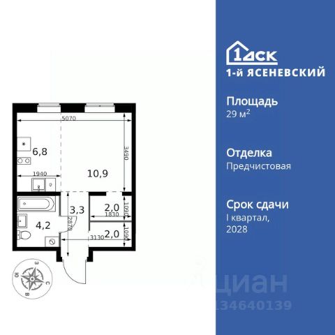Прямая продажа от застройщика! Жилой Комплекс класса Комфорт Плюс. Продаётся квартира-студия номер 727 общей площадью 26.8 кв.м. на 3-м этаже 18 этажного здания. Предчистовая отделка. Цена с учётом скидки. Особенности квартиры: - Квартиры рядом с метро - м. Корниловская 9 мин пешком - 63 га лесопарка за окнами - Школа c ИТ-кластером и бассейном. 2 детских сада - Организуем показ в удобное для вас время! - Линейная планировка - максимальная функциональность и удобство. - Увеличенное количество окон - дополнительное освещение и свежий воздух. - Можно оборудовать рабочее место - комфорт для работы и учёбы. - Гардеробная - удобство для хранения и организации вещей. Квартира с предчистовой отделкой. Вам не придется заниматься черновыми и трудоёмкими работы, а чистовую отделку и дизайн - сделайте на свой вкус. Информация о комплексе: ЖК "1-й Ясеневский": преимущества городской инфраструктуры и природы. Пешая доступность к метро, школе с бассейном и ИТ-кластеру, а также 63 га Троицкого лесопарка под окнами. Закрытая территория с бульварами, велодорожками, кафе и дворами без машин. Фруктовые деревья и городские сады создают уникальную атмосферу. Всего в 1 км от МКАД - идеальный баланс для современной жизни. Транспортная доступность: До метро "Корниловская" - 12 минут пешком До метро "Тютчевская" - 25 минут пешком До метро "Теплый стан" - 10 минут на транспорте До метро "Ольховая" - 30 минут на общественном транспорте Личный автотранспорт: Выезд на Калужское шоссе - 500 м МКАД - 1 км Внутренняя инфраструктура: ЖК "1-й Ясеневский" - идеальное место для семей с детьми. Рядом Троицкий лесопарк для прогулок, а во дворах - современные детские площадки, разработанные с участием психологов. В шаговой доступности два детских сада и школа на 1100 мест с ИТ-кластером, бассейном и классами робототехники. Всё для счастливого детства и успешного будущего. Квартира с предчистовой отделкой - ваш дизайн без черновых работ