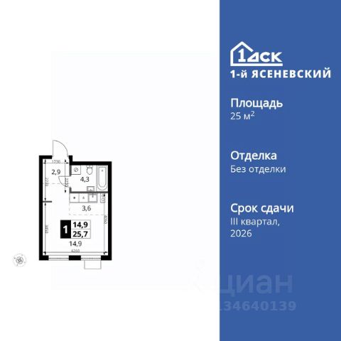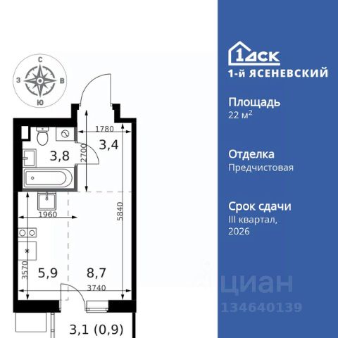 Прямая продажа от застройщика! Жилой Комплекс класса Комфорт Плюс. Продаётся квартира-студия номер 48 общей площадью 28.3 кв.м. на 6-м этаже 16 этажного здания. Предчистовая отделка. Цена с учётом скидки. Особенности квартиры: - Квартиры рядом с метро - м. Корниловская 9 мин пешком - 63 га лесопарка за окнами - Школа c ИТ-кластером и бассейном. 2 детских сада - Организуем показ в удобное для вас время! - Линейная планировка - максимальная функциональность и удобство. - Увеличенная ширина окна/окон - больше света и визуального простора. - Ниша под шкаф - компактное и удобное место для вещей. Квартира с предчистовой отделкой. Вам не придется заниматься черновыми и трудоёмкими работы, а чистовую отделку и дизайн - сделайте на свой вкус. Информация о комплексе: ЖК "1-й Ясеневский": преимущества городской инфраструктуры и природы. Пешая доступность к метро, школе с бассейном и ИТ-кластеру, а также 63 га Троицкого лесопарка под окнами. Закрытая территория с бульварами, велодорожками, кафе и дворами без машин. Фруктовые деревья и городские сады создают уникальную атмосферу. Всего в 1 км от МКАД - идеальный баланс для современной жизни. Транспортная доступность: До метро "Корниловская" - 12 минут пешком До метро "Тютчевская" - 25 минут пешком До метро "Теплый стан" - 10 минут на транспорте До метро "Ольховая" - 30 минут на общественном транспорте Личный автотранспорт: Выезд на Калужское шоссе - 500 м МКАД - 1 км Внутренняя инфраструктура: ЖК "1-й Ясеневский" - идеальное место для семей с детьми. Рядом Троицкий лесопарк для прогулок, а во дворах - современные детские площадки, разработанные с участием психологов. В шаговой доступности два детских сада и школа на 1100 мест с ИТ-кластером, бассейном и классами робототехники. Всё для счастливого детства и успешного будущего. Квартира с предчистовой отделкой - ваш дизайн без черновых работ