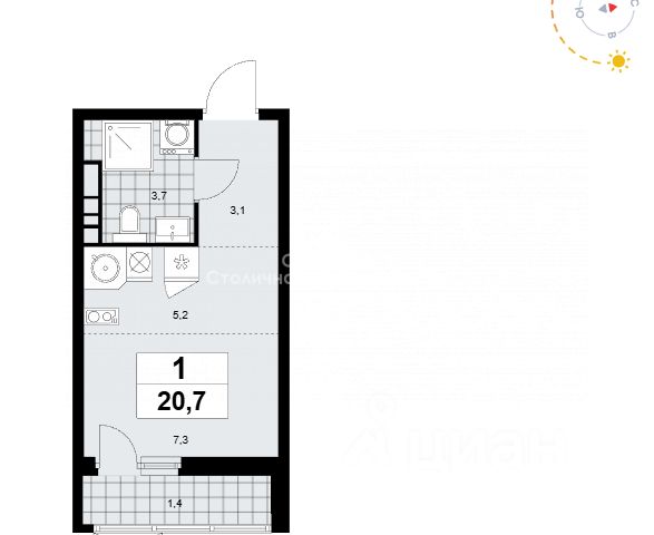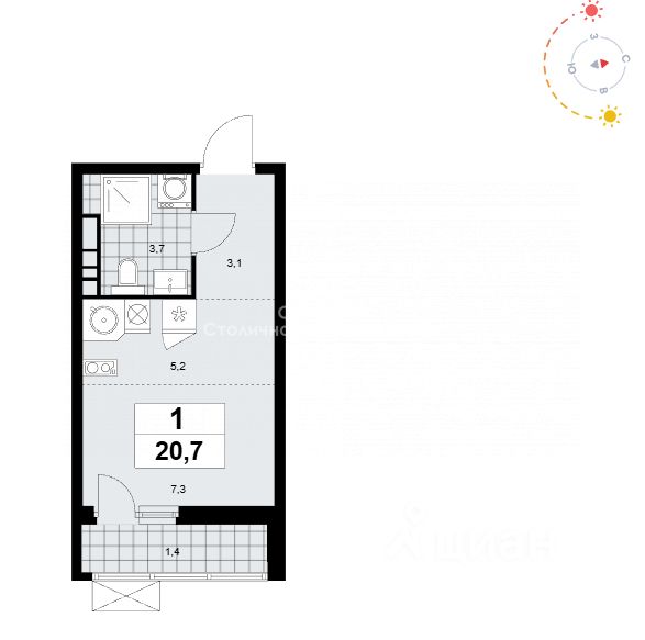 В жилом комплексе, расположенном по соседству с ландшафтным парком "Южное Бутово", продается студия площадью 27.20 кв. м. без отделки. Квартира расположена на 2 этаже 1 корпуса в жилом квартале комфорт-класса "Новые Смыслы" (ГК Unikey/Юникей). Доступная и удобная локация: - 10 минут ходьбы до станции метро "Потапово". - 25 минут ходьбы до станции метро "Бунинская аллея". - 15 минут на авто до Калужского шоссе. - 20 минут на авто до МКАД. - 30 минут на машине до аэропортов "Внуково" и "Остафьево". Продуманный архитектурный проект: - Разноуровневые секции с эстетичные башнями и контрастными цветовыми сочетаниями, напоминающими башни в Сити. - Сказочные виды из окон на современный район столицы. - Авторские планировки с потолками в 3 метра, просторными кухнями-гостиными и мастер-спальнями. - Комфортные бесплатные общественные пространства. - Подземный паркинг с прямым доступом на лифте. - Настоящий лес с живописными пейзажами и прудом прямо во дворе. Расположение Комплекс "Новые Смыслы" расположится в благоприятном районе Новой Москвы - Коммунарка. Зеленое окружение, богатая инфраструктура развивающегося района - все это сформирует особое пространство для комфортной жизни, наполненной смыслом. 10 минут на велосипеде - и вы в ландшафтном парке "Южное Бутово" или сквере у Потаповских прудов. Чуть дальше расположен Бутовский лесопарк. В окружении "Новых Смыслов" вы найдете все необходимые социальные объекты. В двух шагах от дома находится 5 школ, более десятка детских садов, секции для занятий малышей и подростков, частные клиники, супермаркеты, рестораны, студии красоты и фитнес-центры. За 12 минут на авто вы доберетесь до ледовой арены, комплекса "Спорт Станция" и спа-центра "Termoland". Внутренняя инфраструктура Для жителей "Новых Смыслов" будут созданы бесплатные общественные пространства: - Деловая гостиная с эстетичным коворкингом и переговорными. - Гостиная для души и тела, включающая фитнес-зону с тренажерами и пространства для стретчинга, йоги и медитаций. - Гостиная детства, где дети будут играть и развиваться под присмотром тьютора. - Кино-гостиная - кинотеатр на крыше одного из домов, предлагающий разнообразную программу. - Прачечная, работающая только для жильцов. Вместе с корпусами комплекса на территории запланировано строительство детского сада. На первых этажах корпусов откроются кофейни, пекарни, сервисы быта и пункты доставки. Благоустройство Чтобы отдохнуть от суеты города, достаточно выйти во двор: здесь раскинулся настоящий лес с живописными пейзажами. В тени деревьев жителей ждут пруд с мостиком и беседкой на берегу, тихие прогулочные аллеи, спортивная площадка и зоны для занятий йогой и бадминтоном на свежем воздухе. Юных жителей порадуют современные детские площадки, жукарий и специальное пространство для подвижных игр. Безопасность на территории гарантирована: двор огорожен от машин и оснащен камерами видеонаблюдения.