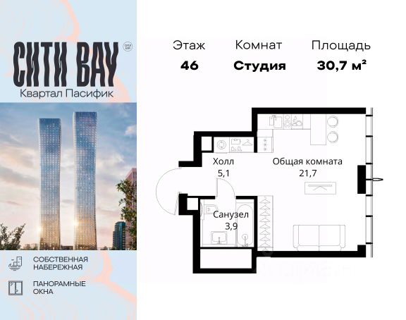 Продаётся Студия 30 м². В жилом районе Алиа на 3-м этаже 11-этажного дома. Жилой район Алиа — это дома бизнес-класса у слияния Москвы-реки и Сходни. Алиа находится в Покровском-Стрешневе, экологически чистом районе на престижном северо-западе столицы. Район возводится на бывшей территории Тушинского аэрополя, где никогда не было промышленного производства. Алиа — это район разностороннего развития, спроектированный по принципу WORK.LIVE.PLAY.LEARN. Это "15-минутный город", где вся необходимая для комфортной жизни инфраструктура — на расстоянии приятной прогулки. У района удобное расположение: отсюда меньше 10 минут пешком до станций метро "Спартак" и "Тушинская" и всего полчаса на автомобиле до центра города или аэропорта Шереметьево. Архитектурную концепцию Алиа разработало бюро SOM (Skidmore, Owings & Merrill), авторы знаменитой "Бурдж-Халифа". В Алиа больше 140 планировочных решений, среди которых — редкие для Москвы форматы: квартиры с окном в ванной, пентхаус, сити-юниты и таунхаусы. Почти половина территории района отдана под благоустройство. В Алиа три парка: Линейный парк с кафе и магазинами, Центральный парк с амфитеатром, сухим фонтаном и большим плейхабом для детей всех возрастов и Прибрежный парк на собственной набережной, одной из самых длинных в Москве. В каждом урбан-блоке — закрытый внутренний двор с гипоаллергенными растениями и детской площадкой. В лобби каждого жилого корпуса в Алиа оборудована зона ожидания, колясочная, гостевой санузел и лапомойка для домашних животных. За стойкой ресепшена резидентов и их гостей встречает консьерж. Центральное лобби урбан-блока — это стильное общественное пространство с коворкингом, лаундж-зоной и кофе-пойнтом. Это "вторая гостиная" жителей урбан-блока и одно из мест, где формируется комьюнити Алиа. Два ключевых объекта инфраструктуры в Алиа — это спорткомплекс "Чкалов Арена", где представлены 25 видов спорта, и самый большой в стране бизнес-парк класса A, благодаря которому району обеспечено быстрое развитие.