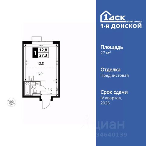 Продаётся студия в сданном доме (Ново-Молоковский, 1 (Корпус 13)), срок сдачи: IV-кв. 2024, общей площадью 26.3 кв.м., на 4 этаже. Расположение, транспортная доступность