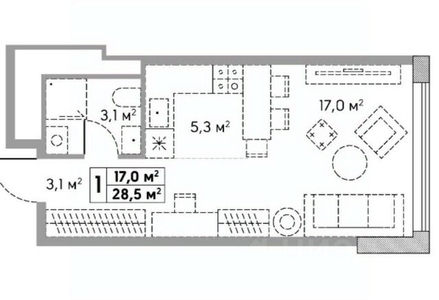 Планировка квартиры очень удачная: большая кухня-гостиная, спальня, с/у, общая площадь 45,7 кв.м. В квартире 1 санузел. Высота потолков 3,1 метра! Окна квартиры в пол, и выходят на бульвар и во двор, виды просто потрясающие! Красивое остекление 2 огромных лоджий 7 и 4 кв.м.