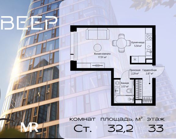 Прямая продажа от застройщика. В ЖК Сет продается студия площадью 23.82 м², расположенная в корпусе А, на 22 этаже 52 этажного дома. Сет имеет стратегически выгодное расположение в ЗАО, в районе с большой историей и блестящим будущим: между природной зоной долины реки Сетунь и Кутузовским проспектом. В рамках возведения первой очереди предусмотрено три корпуса высотой 18, 45 и 59 этажей. На верхних этажах спроектированы общедоступные смотровые площадки с панорамным обзором на центр столицы. Преимущества проекта: • Функциональные планировочные решения • Контроль проникновения через входную дверь • Система управления освещением и температурой в квартире • Система защиты от протечек с функцией перекрытия воды • Вход в подъезд по биометрическим считывателям Face ID • Скоростные лифты • Двухуровневый подземный охраняемый паркинг на 495 машино-мест Застройка Сет включает в себя не только жилые корпуса, но и инфраструктурные объекты. Все необходимое для повседневного комфорта будет расположено в шаговой доступности: • Фитнес-Клуб с бассейном • Ведущая городская школа, детский сад и школа искусств • Центр культуры и досуга • Медицинский центр • Кафе и рестораны Расположение комплекса: Пешком: • Метро "Давыдково" - 17 минут • Парк "Долина реки Сетунь" - 3 минуты • Открытие новых станций метро в шаговой доступности в будущем Инфраструктура: Разнообразить свой день резиденты Веер смогут также проводя больше времени на свежем воздухе. Двор разделен на 4 зоны разных эмоций и действий, которые пересечены и соединены веерными прогулочными маршрутами: • Спортивная площадка устроена в глубине "Кленовой рощи" • В "Чайном домике" будет создан навес с утеплением для отдыха в любую погоду • Площадки для детей воплотятся в "Волшебный лес" с цветами, зеркалами и световым дизайном • "Центральная площадь" устроена у водного оазиса живописного пруда. На машине: • "Москва-Сити" - 15 минут • Садовое кольцо - 20 минут • ТЦ "Океания" - 8 минут • ТЦ "Времена года" - 13 минут • Сколково - 12 минут • Гребной канал - 17 минут Компания MR предлагает своим клиентам специальные условия приобретения квартир в рамках программ ипотечного кредитования от банков-партнеров.