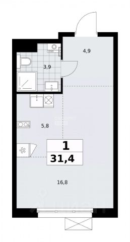 В жилом комплексе, расположенном по соседству с ландшафтным парком "Южное Бутово", продается студия площадью 27.20 кв. м. без отделки. Квартира расположена на 2 этаже 1 корпуса в жилом квартале комфорт-класса "Новые Смыслы" (ГК Unikey/Юникей). Доступная и удобная локация: - 10 минут ходьбы до станции метро "Потапово". - 25 минут ходьбы до станции метро "Бунинская аллея". - 15 минут на авто до Калужского шоссе. - 20 минут на авто до МКАД. - 30 минут на машине до аэропортов "Внуково" и "Остафьево". Продуманный архитектурный проект: - Разноуровневые секции с эстетичные башнями и контрастными цветовыми сочетаниями, напоминающими башни в Сити. - Сказочные виды из окон на современный район столицы. - Авторские планировки с потолками в 3 метра, просторными кухнями-гостиными и мастер-спальнями. - Комфортные бесплатные общественные пространства. - Подземный паркинг с прямым доступом на лифте. - Настоящий лес с живописными пейзажами и прудом прямо во дворе. Расположение Комплекс "Новые Смыслы" расположится в благоприятном районе Новой Москвы - Коммунарка. Зеленое окружение, богатая инфраструктура развивающегося района - все это сформирует особое пространство для комфортной жизни, наполненной смыслом. 10 минут на велосипеде - и вы в ландшафтном парке "Южное Бутово" или сквере у Потаповских прудов. Чуть дальше расположен Бутовский лесопарк. В окружении "Новых Смыслов" вы найдете все необходимые социальные объекты. В двух шагах от дома находится 5 школ, более десятка детских садов, секции для занятий малышей и подростков, частные клиники, супермаркеты, рестораны, студии красоты и фитнес-центры. За 12 минут на авто вы доберетесь до ледовой арены, комплекса "Спорт Станция" и спа-центра "Termoland". Внутренняя инфраструктура Для жителей "Новых Смыслов" будут созданы бесплатные общественные пространства: - Деловая гостиная с эстетичным коворкингом и переговорными. - Гостиная для души и тела, включающая фитнес-зону с тренажерами и пространства для стретчинга, йоги и медитаций. - Гостиная детства, где дети будут играть и развиваться под присмотром тьютора. - Кино-гостиная - кинотеатр на крыше одного из домов, предлагающий разнообразную программу. - Прачечная, работающая только для жильцов. Вместе с корпусами комплекса на территории запланировано строительство детского сада. На первых этажах корпусов откроются кофейни, пекарни, сервисы быта и пункты доставки. Благоустройство Чтобы отдохнуть от суеты города, достаточно выйти во двор: здесь раскинулся настоящий лес с живописными пейзажами. В тени деревьев жителей ждут пруд с мостиком и беседкой на берегу, тихие прогулочные аллеи, спортивная площадка и зоны для занятий йогой и бадминтоном на свежем воздухе. Юных жителей порадуют современные детские площадки, жукарий и специальное пространство для подвижных игр. Безопасность на территории гарантирована: двор огорожен от машин и оснащен камерами видеонаблюдения.