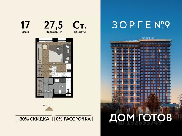 "Зорге 9" — готовые апартаменты бизнес-класса на Ходынке. 10 минут до Москва-Сити. Архитектура: 3 современных корпуса с фасадами в стиле архитектуры Нью-Йорка и с сервисами премиальных отелей, высотой до 23 этажа. Строгие линии, панорамные окна создают ощущение неподдельной роскоши и комфортной жизни в сердце мегаполиса. Проект награжден авторитетной премией European Property Awards. Резиденции: Свободная планировка, небольшая глубина этажа, огромные панорамные окна в пол до 3,6 м и высота потолков до от 3,3 до 4,3 м позволяют реализовать самые смелые концептуальные идеи и создать идеальный интерьер с учетом всех пожеланий. Вдохновляющие виды на город украсят ваш апартамент лучше любой картины. Есть возможность приобретения дизайн-проекта и полной меблировки апартаментов от партнеров девелопера. Расположение: 3 мин. пешком до парка Березовая роща 10 мин. пешком до Ходынского поля 10 мин. до ТЦ Авиапарк 30 минут до Шереметьево 10 мин до Москва-Сити или 1 станция до Москва-Сити 5 минут до ТТК 4 станции метро в шаговой доступности: 6 мин м. Полежаевская (фиолетовая ветка) 7 мин МЦК Зорге (МЦК) 7 мин м. Хорошевская (голубая ветка) 10 мин МЦК Хорошёво (МЦК) Благоустройство: Собственный парк 2 га с амфитеатром и поющими фонтанами. В парке высажено 136 деревьев и более 11 000 кустов и мелких растений из немецких питомников. Площадка для йоги и воркаут-зона со спортивными площадками. Теннисные столы и детский плейхаб Две башни Авторское гранд-лобби В лобби предусмотрена лаундж-зона, чайная с камином, комната для хранения велосипедов и колясок. Доступ по системе FACE ID. В отделке лобби и лифтовых холлов использован декоративный камень итальянского бренда Atlas Concorde Пентхаусы На верхнем уровне комплекса расположены роскошные просторные пентхаусы с высотой потолка до 4,2 метра и панорамными окнами до 3,6 метров, открывающими великолепные виды на столицу. Пентхаусы с выходами на собственные приватные террасы на кровле, площадью от 150 кв. м являются жильем high-уровня, демонстрирующим высокий статус владельца. Купить квартиру-студию с большой кухней в Москве.