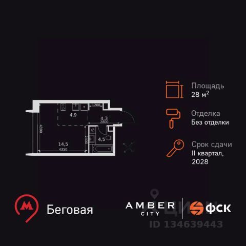 Прямая продажа от застройщика! Жилой Комплекс премиум-класса. Продаётся квартира-студия номер 1269 общей площадью 33.4 кв.м. на 51-м этаже 57 этажного здания. Без отделки. Цена с учётом скидки. Особенности квартиры: - Линейная планировка - максимальная функциональность и удобство. - Увеличенная ширина окна/окон - больше света и визуального простора. - Увеличенная высота окна - больше воздуха и света. - Ниша под стиральную машину - удобство и экономия пространства. - Гибкая планировка - создайте пространство по своему вкусу. - Место для игры/занятия спортом - идеальное пространство для активных детей. - Линейная кухня - функциональность и практичность в одном решении. - Ниша под шкаф - компактное и удобное место для вещей. Информация о комплексе: Amber City - это не просто квартал. Это место, куда ведут все маршруты, где рождается вдохновение работать и творить, где счастлива семья и жизнь кипит 24/7. Модная архитектура, высокотехнологичные решения и самодостаточная инфраструктура приближают Amber City к лучшим районам Гонконга и Нью-Йорка. Потрясающие виды на Москва-Сити и центр позволяют заряжаться их амбициозностью, не подчиняясь суете. Стремящиеся ввысь небоскребы, благоустроенный парк с зонами отдыха для взрослых и детей, а также многочисленные объекты инфраструктуры возводятся в западной части центра Москвы. Транспортная доступность: Квартал отличается исключительной транспортной доступностью: большая часть значимых мест Москвы находится на расстоянии 15-20 минут. Такое расположение позволит полностью погрузиться в деловую и культурную жизнь столицы и тратить на дорогу только необходимый минимум времени. Общественный транспорт: - Станция метро "Беговая" - 5 минут пешком - Станция "Беговая" (МЦД-1) - 5 минут пешком - Ж/д станция Беговая - 12 минут пешком - Остановка "2-й Хорошёвский проезд" - 3 минуты пешком - Станция метро "Звенигородская" (строящаяся) - 10 минут пешком На автомобиле: - Звенигородское шоссе - 3 минуты - TTK - 5 минут - Хорошёвское шоссе - 9 минут - Садовое кольцо - 12 минут - Красная Пресня - 15 минут - Тверская - 20 минут - Серебряный бор - 8 минут - Строгинский затон - 8 минут - Москва-Сити - 10 минут - Кремль - 20 минут - Аэропорт Шереметьево - 40 минут Внутренняя инфраструктура: Умелая работа над ландшафтом позволила правильно зонировать многоуровневое пространство, общей площадью 6 гектаров, открывая разнообразные возможности для резидентов Amber City и их детей. Главной артерией квартала станет собственный зеленый бульвар. Он начнется с площади у входа на территорию и, объединяя все внутренние пространства, пройдет через ключевые площади с арт-объектами, водными зонами и архитектурными формами. Дополнительные пространства для отдыха будут размещены в закрытых зеленых дворах на стилобате. Здесь будут расположены детские площадки с песочницами, тактильными дорожками, каруселями и природными игровыми элементами. Те, кто привык работать и отдыхать с комфортом, по достоинс