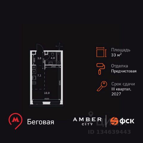 Прямая продажа от застройщика! Жилой Комплекс премиум-класса. Продаётся квартира-студия номер 80 общей площадью 34 кв.м. на 8-м этаже 43 этажного здания. Отделка Whitebox. Цена с учётом скидки. Особенности квартиры: - Линейная планировка - максимальная функциональность и удобство. - Увеличенное количество окон - дополнительное освещение и свежий воздух. - Можно оборудовать рабочее место - комфорт для работы и учёбы. - Линейная кухня - функциональность и практичность в одном решении. - Лоджия - уютное место для отдыха и тишины. Квартира с предчистовой отделкой (White box). Вам не придется заниматься черновыми и трудоёмкими работы, а чистовую отделку и дизайн - сделайте на свой вкус. Информация о комплексе: Премиум-класс прямо на берегу Москвы-реки, с прямым выходом на набережную и потрясающими панорамными видами! На Шелепихинской набережной, расположен причал для речных трамваев. Вам станет доступна единственная столичная транспортная артерия, на которой никогда нет пробок: 20 минут до Москва-Сити, да еще и с вдохновляющими видами по пути. Входные группы домов - это индивидуальные дизайн-проекты, посвященные трем главным местам в жизни Лермонтова: Тарханам, Петербургу и Кавказу, которые объединяют сочетание эстетики и комфорта. Бурная жизнь соседей больше не сможет нарушить ваш покой, а к вам никто не постучит, если вы захотите прибавить громкость в любимом музыкальном треке или Ваши дети захотят устроить ночную пробежку! Живите только по своим правилам. В каждой квартире подключен базовый пакет Умная квартира забудьте о беспокойстве о протечке; настройте свои сценарии управления техникой и электричеством; общайтесь с Умной квартирой голосом; Можете легко расширить базовый пакет и подключить дополнительные опции и устройства, чтобы из любой точки мира управляй работой бытовых приборов и систем, например: включайте разогрев ужина; регулируйте яркость яркость света; регулируйте громкость музыки; настраивайте работу теплых полов; Транспортная доступность: В 50 м до новой станции метро "Звенигородская". Вторая улица от ЦАО и соседство с Москва-Сити. Все виды общественного транспорта, в том числе речные трамвайчики, в пешей доступности Внутренняя инфраструктура: Основная артерия жизни квартала - центральный бульвар. Вы с радостью обнаружите, что путь до престижных школ и вузов, развлечений и магазинов сжался до нескольких минут езды на машине. К вашим услугам: - муниципальные школы и ДОУ, музыкальные и спортивные школы, - 8 муниципальных ДОУ и 2 ДОУ с изучением английского языка - 5 медицинских учреждений - ТРЦ "Хорошо!" и "Авиапарк" - Сетевые фитнес-клубы World Class, X-Fit и др. - Горнолыжные склоны "Лата Трэк", ледовый дворец и гребной